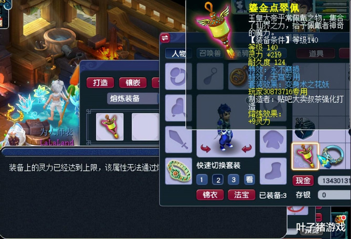 玩家所持第一条项链,为140级219初灵不磨属性,熔炼9点灵力已经达到极限。由于这类装备通常要打折算钱,镶嵌10锻舍利子已经够用了,刷任务会特别舒服。