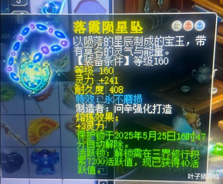 前不久,有位玩家仅仅鉴定一条160级项链,怎料运气爆棚逆袭了不磨特效。属性方面也特别给力,原始灵力达到241,后续还能通过熔炼提升约17点灵力。这非常适合神木、魔花果、魔王等法系门派,刷任务嘎嘎省珍珠钱。